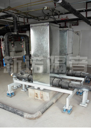 聲源分析:***空調機組的主要噪聲源分為兩部分,一為機組頂部風機出風噪聲,即空氣動力性噪聲;另外就是機組機身壓縮機運行時的噪聲?! ±鋮s塔噪聲也主要分為兩部分,一為冷卻塔出風口風機噪聲,風機噪聲主要有空氣動力性噪聲、機械噪聲與電磁噪聲組成。二則為淋水噪聲,淋水噪聲是水流降落到水面形成的聲音,屬于撞擊噪。